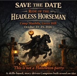 Ride of the Headless Horseman Camp Maubila | October 23–25, 2026This is a skills-based, story-driven camporee built around one...