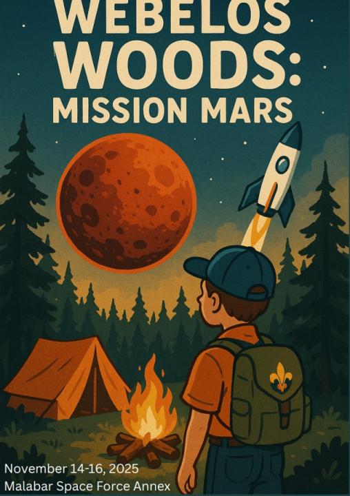 Webelos and AOLs, come join Riverside District troops and explore new frontiers, build leadership skills, and launch into adventure through space-themed challenges and outdoor fun! We will be learning about campfires, first aid, lashings, solar cooking, and more. You will be challenged to find and solve Martian codes located at geocaches around the camp and launch rockets. You do not want to miss this event!