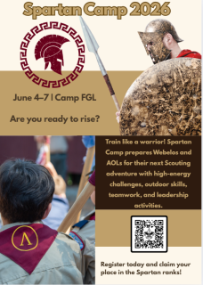 Become a Spartan. Rise to the Challenge. Spartan Camp 2026For Webelos & Arrow of Light ScoutsJune 4–6 | Camp FGLGear up for a...