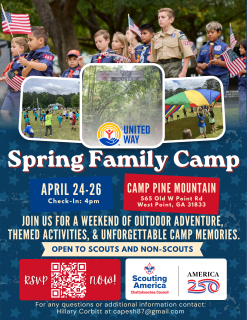 Spring Family Camp Break out your white, red, and blue for this patriotic-themed event! Taking place April 24 - 26, families w...