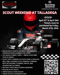 The Talladega Superspeedway Scout Weekend is back again, on April 25th and 26th! The weekend includes: