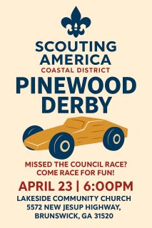 Coastal District Pinewood DerbyApril 04, 2026 10:00 AM: American Legion Post 166
