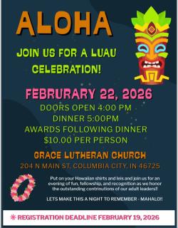 Wabash Valley District Recognition Dinner March 7, 2026 6:00 p.m.Calvary Lutheran Church 1532 N Main St. Bluf...
