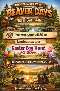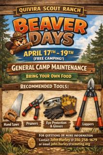 QSR Beaver Days!!!Date: April 17th-19th, 2026Location: QSR (Quivira Scout Ranch)Purpose: A weekend of fellowship, conservatio...