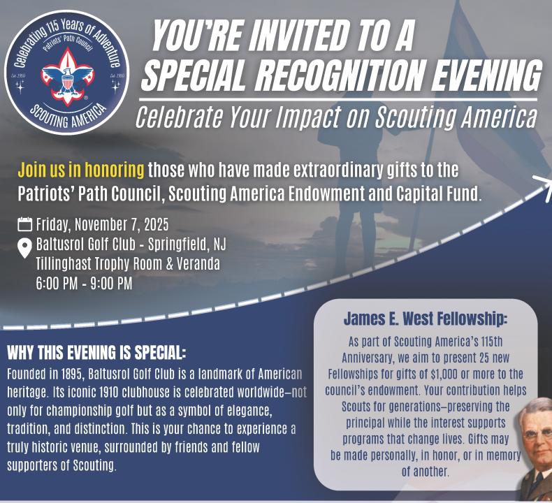 Patriots' Path Council - 2025 Special Contributors - Celebrate Your Impact on Scouting America