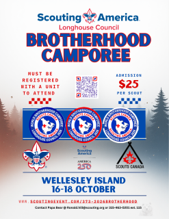 Please join us for the 2026 Brotherhood Camporee at Wellesley Island State Park. The 2026 Camporee will feature more program events and areas.