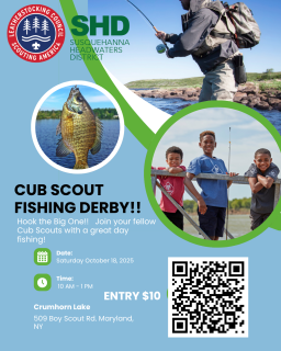 The Cub Scout Fishing Derby is coming on the 18th!!! Bring your favorite fishing gear for a great day on Crumhorn Lake! Let's get out and catch the big one!