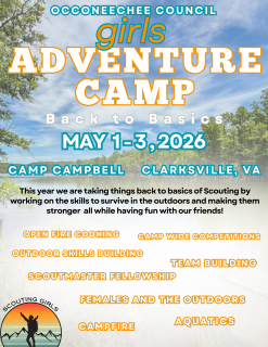 Girls Adventure Camp is Back!This time we will be taking in the warmer weather and the refreshing water at Occoneechees Camp Cam...