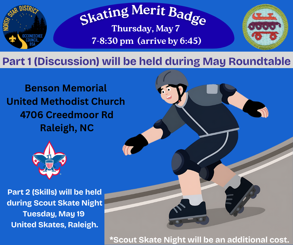 Join us at the May North Star Roundtable to cover the classroom portion of the skating merit badge.