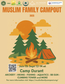 Save the date! Our 2026 Muslim Family Campout will take place at Camp Durant the weekend of August 28-30, 2026. Registration opens on this website on June 30, 2026, and will close on August 21, 2026.