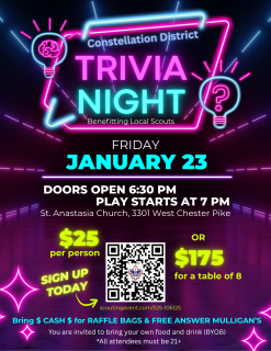 Join us for the 1st Annual Constellation District Scouting Trivia Night Fundraiser!