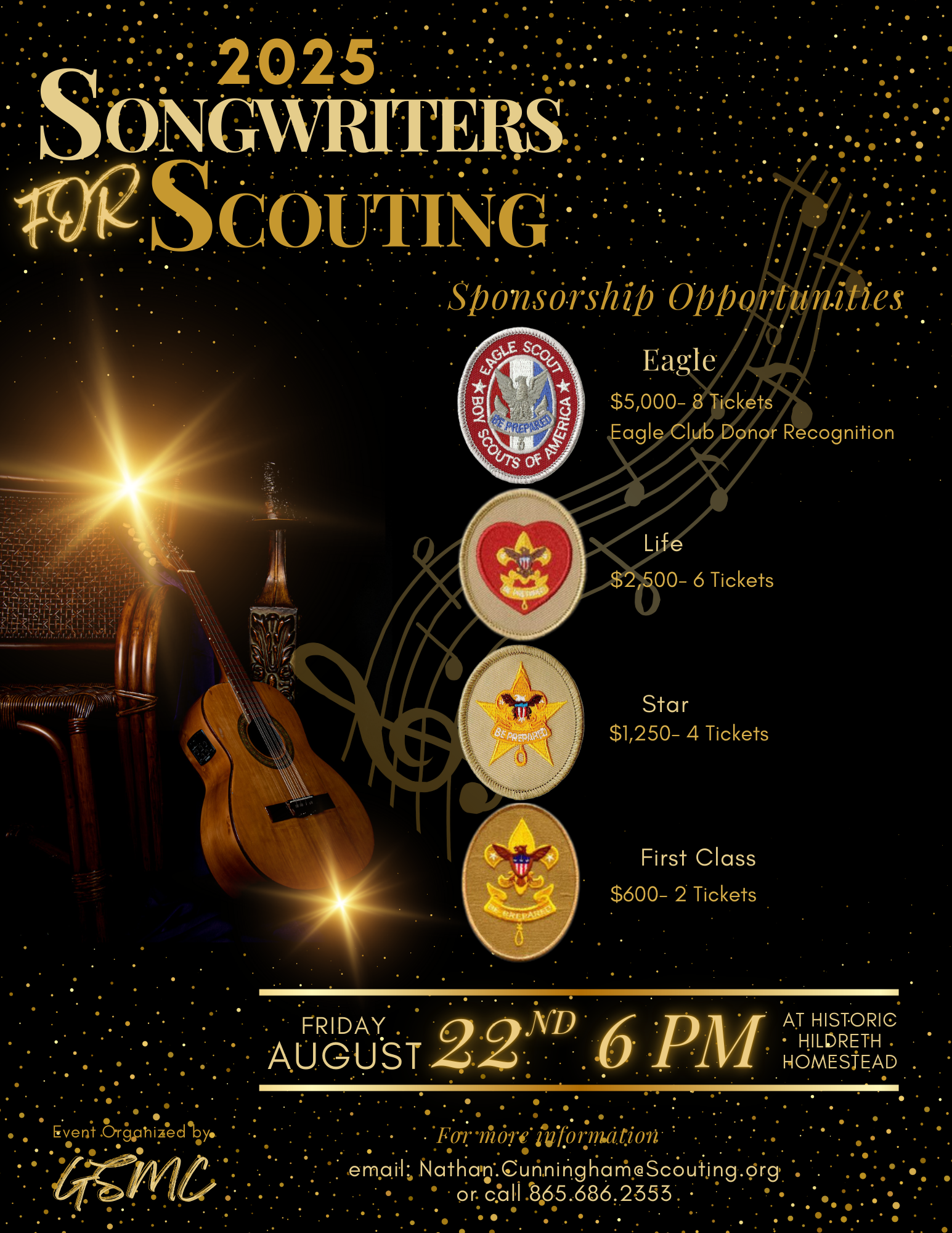 Questions, contact Nathan Cunningham, 865-686-2353 or Nathan.Cunningham@scouting.org or John or Heath Hildreth.