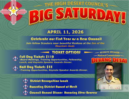 Welcome to the 2026 San Juan Mountains Area Spring Camporee! More information to comeEveryone needs to bring Health forms A and ...