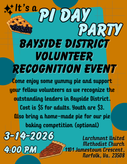 It's a Pi Day Party! Scouting America, Tidewater Council Bayside District will recognize volunteers for their outstanding servi...