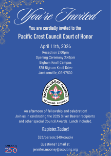 Doug-Fir Merit Badge FairJune 5 - 6 | Marion Mooney Scout Ranch — Camas Valley, OR$15.00 per Scout ($20 after May 17th)Join u...