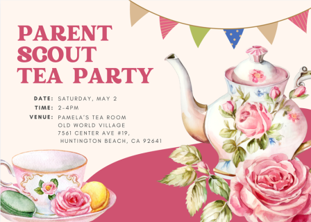 2026 Parent-Scout Spring Tea PartyThe Rancho San Joaquin District invites Scouts and their parents to join us for our annual Spr...