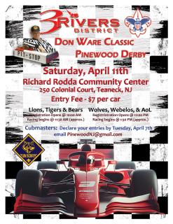 Lenape Trail Pinewood Derby April 11, 2026 -- Livingston Senior Center/Community Center204 Hillside Ave, Livingston, NJ 07039The...