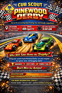 Rio Hondo District Pinewood Derby Check in starts at 9am and will end by 9:45am so don't be late!Racing will follow shortly aft...