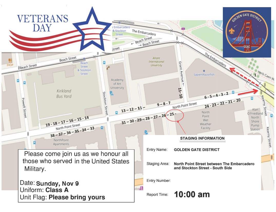 Location: Staging Area: North Point Street between the Embarcadero and STockton Street - Sout Side. See image below or PDF attachment for map and location.